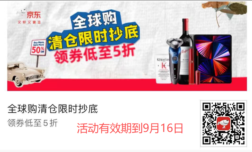 【京东全球购清仓】复制以下口令,再打开京东APP即可使用,活动有效期到:9月11-9月16